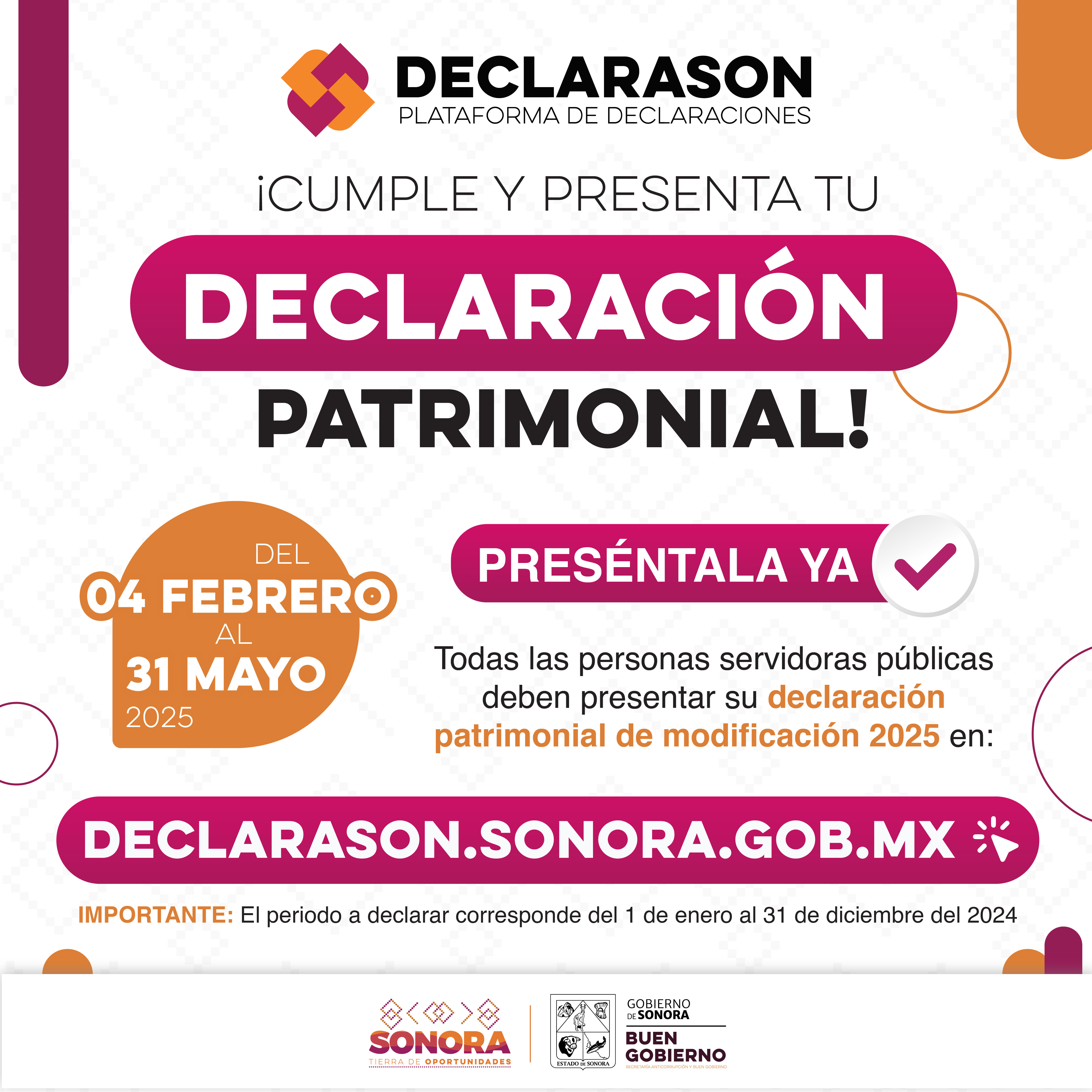Hermosillo, Sonora; 25 de abril de 2025.- El Gobierno del Estado de Sonora, a través de la Secretaría Anticorrupción y Buen Gobierno, avanza firmemente en el proceso de presentación de la Declaración Patrimonial de Modificación 2025, trámite obligatorio para todas las personas servidoras públicas de la administración estatal.