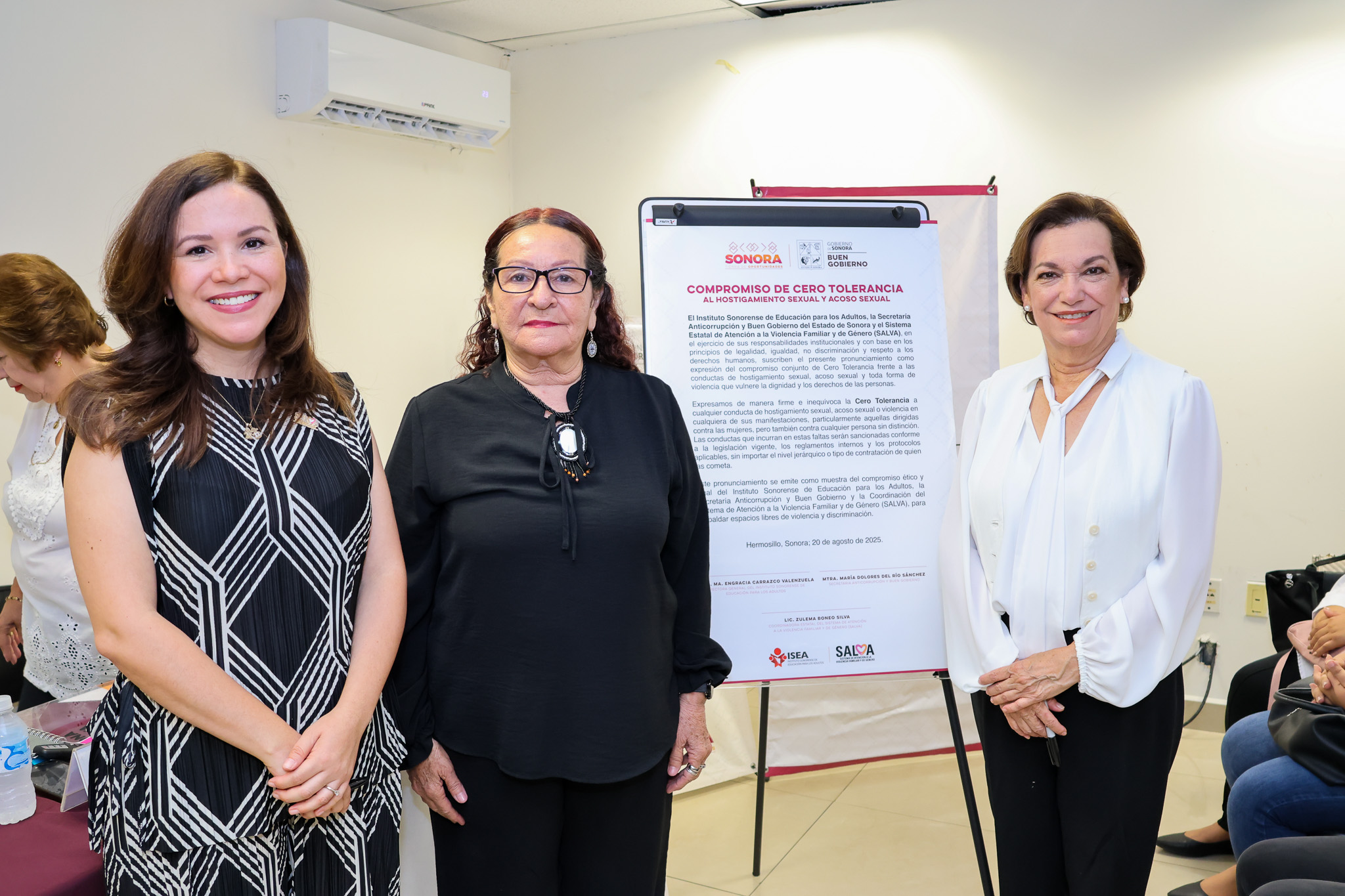 Hermosillo, Sonora; 21 de agosto de 2025.- Como parte del compromiso conjunto de cero tolerancias frente a conductas de acoso, hostigamiento, y cualquier forma de violencia que vulnere la dignidad y derechos de las personas, personal del Instituto Sonorense de Educación para los Adultos (ISEA) participó en la Jornada de Sensibilización y Compromiso Institucional contra el Acoso Sexual, acompañado de la Secretaría Anticorrupción y Buen Gobierno.